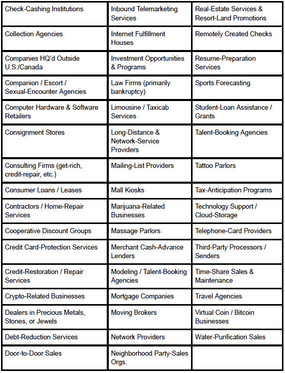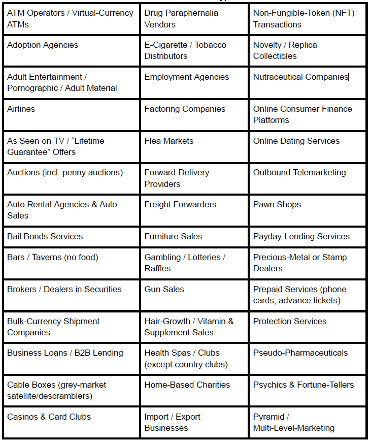 Prohibited Industries & Transaction Types
